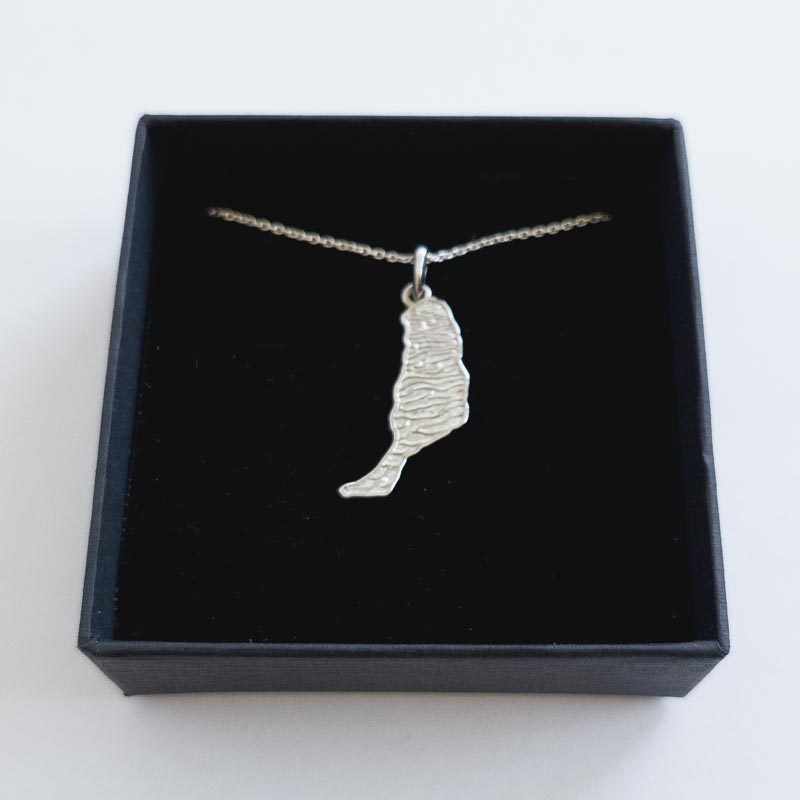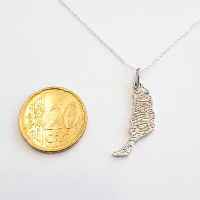Kettenanhänger aus 925 Sterling Silber in Form der Insel Fuerteventura mit Dünenstruktur (Größe S / ca. 25mm hoch).